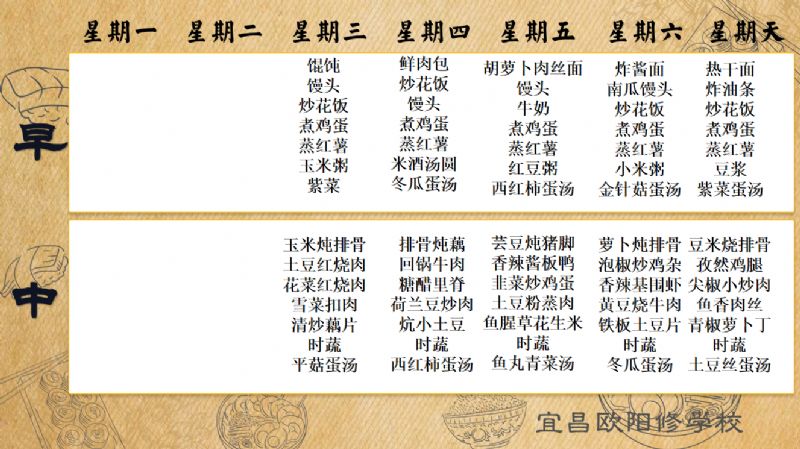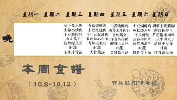 宜昌歐陽(yáng)修學(xué)校每周食譜(10月8日-10月12日)